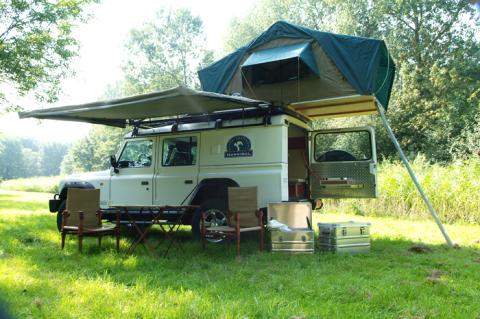 Eine am dachträger montierte markise von 2,00 m breite und 2,10 m länge;
